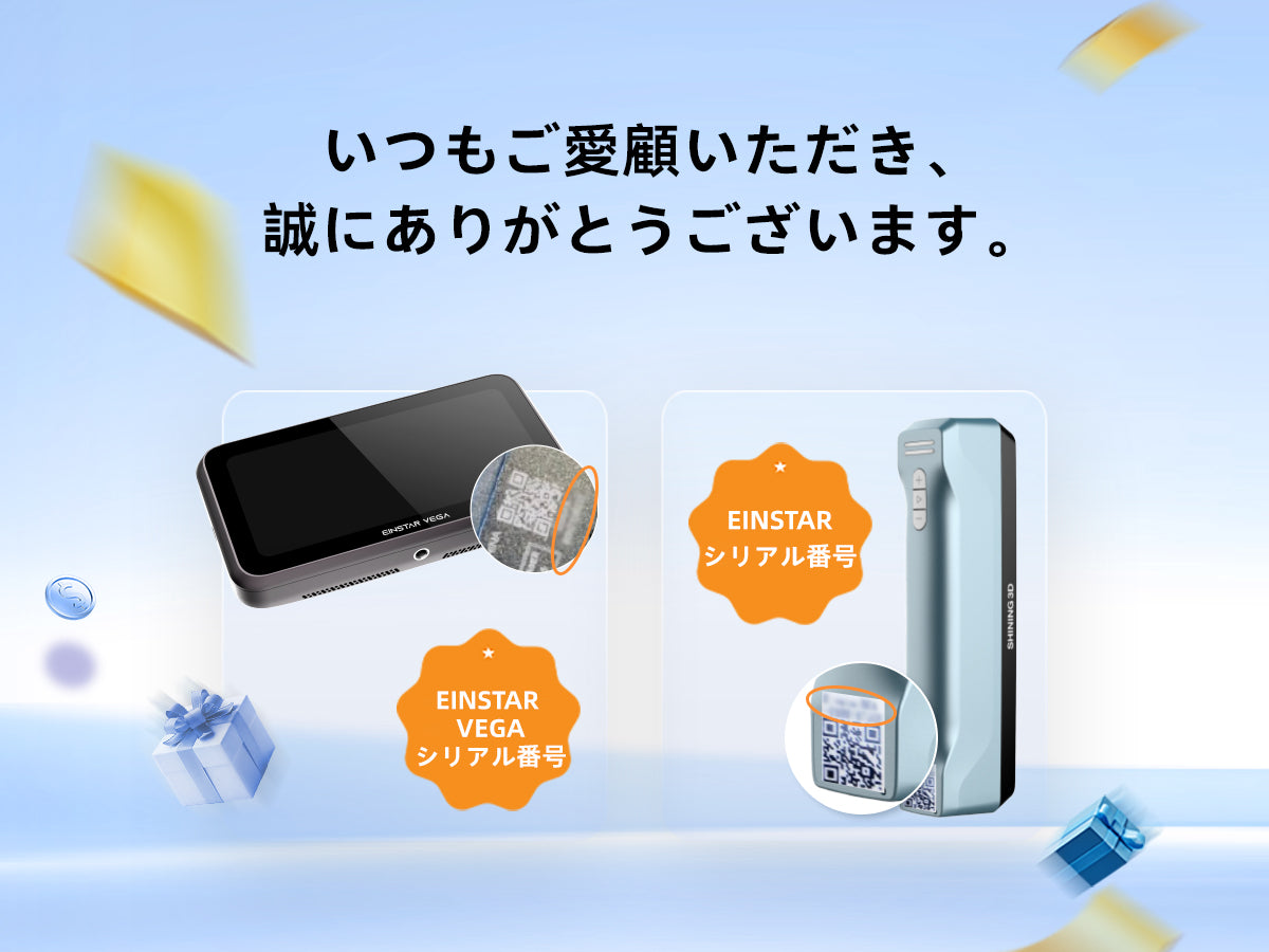 - ステップ 1: これまでにご購入いただいたSHINING 3Dスキャナーのシリアル番号と、メールアドレスをご提出ください。